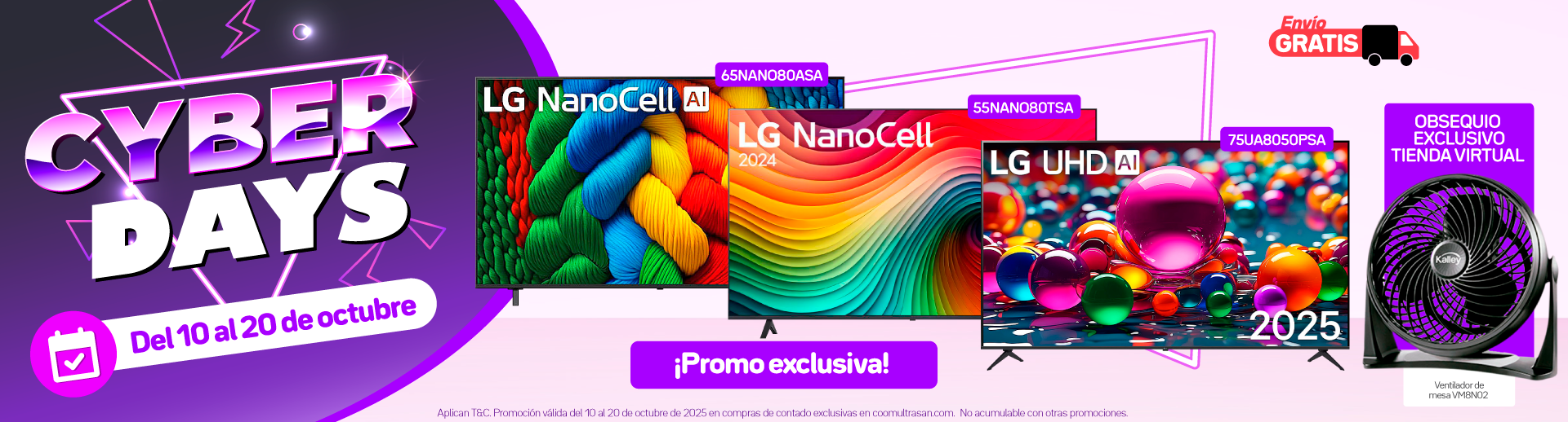 Envío GratisTelevisor 55 Pulgadas LG NanoCell 4k Smart TV - 55NANO80TSA EXCLUSIVO Tienda Virtual Regular: $ 3.644.100Online: $ 2.104.600:$ 2.215.400Ver producto